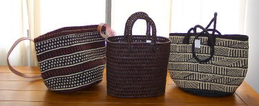 Shipping was amazingly fast, they arrived well-packed, and with a little story card about the women who made them. Also check out their very special chocolate! They are really well-made and would make great shopping totes, purses, or knitting bags - though two are sisal so I'd advise storing the project in a plastic zipper storage bag to avoid snaggage. The brown basket bag for eleven bucks is a bargain - it's very nicely made and smooth inside. All three are much more lovely in person - the strap on the multi-colored bag (the one on the left, it's hard to see but it's a rich chocolate brown, cream and black) is a tad long for me, I can use it as is, but I can get the guy at the shoe repair place to cut it down and stitch it up again a bit shorter if it really bothers me. I'm going to add a couple of Purseket liners to the bigger ones, I think - animal print liners would kick butt in these bags.
