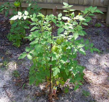 This Roma tomato plant is putting out fruit like a crazy thing! Proof that even a lousy and haphazard gardener can get lucky.