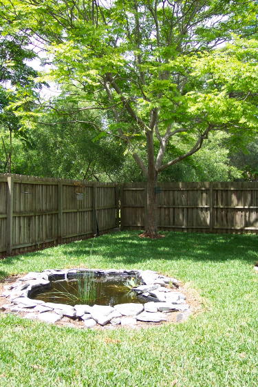 The yard, with sod. It's far from done - there's much planting to do along the fence, etc., but we are now into a daily thunderstorms pattern (it's already clouding up out there) which is great for the sod but bad for yard work. The patio area still contains bags of trash - the garbage men will take only 10 bags of yard trash a week, so I have at least two more weeks of draggin' out bags on Tuesday evening before I get Patio Guys in to put down a patio.