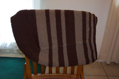 I finished the brown striped Constant Companion bag, haven't sent it swimming yet. This is why felting is so cool - look at the size of that big brown wool pillowcase dumped over the back of the desk chair. It's going to be a nice, firm tote bag. I love it. I love the transformation process.